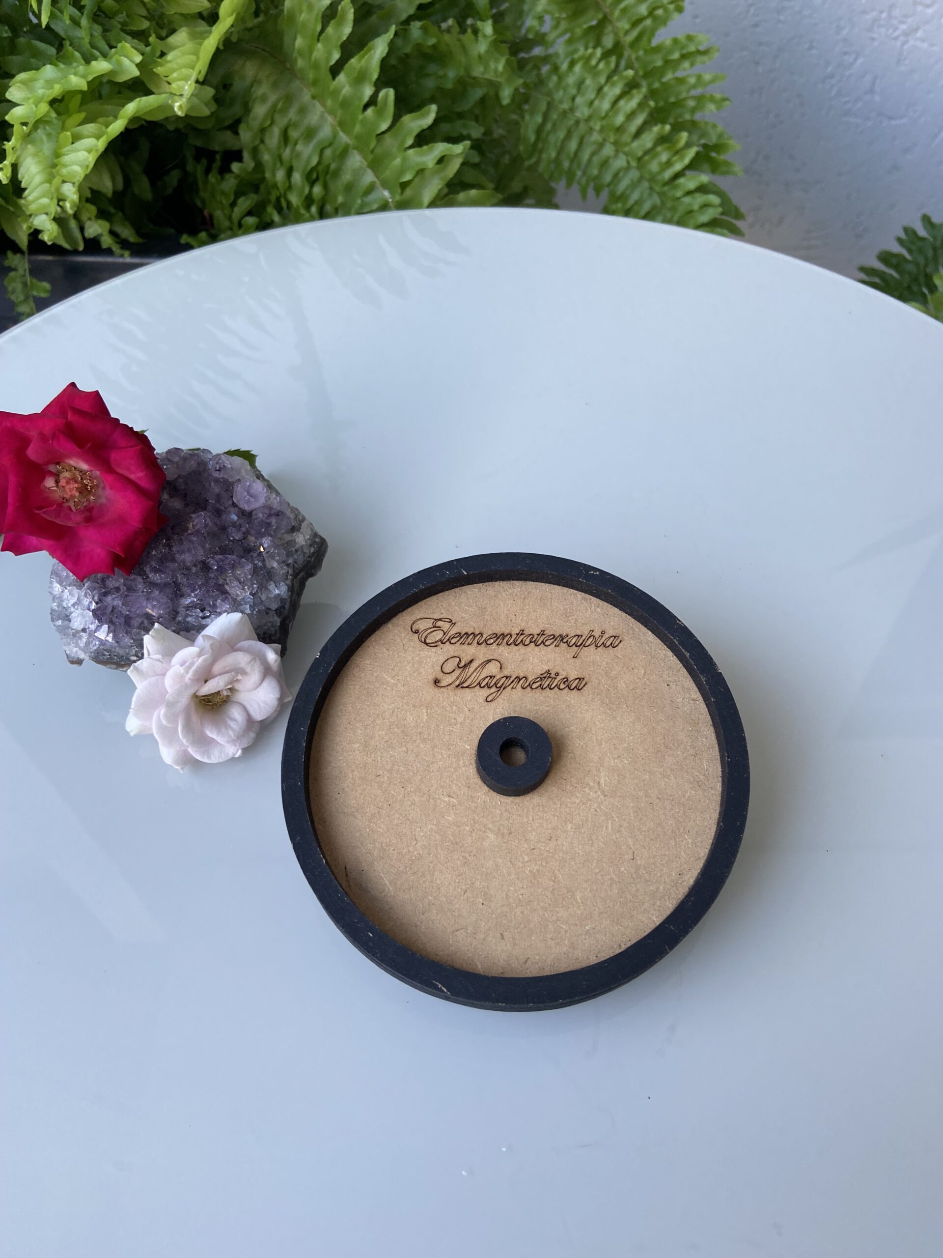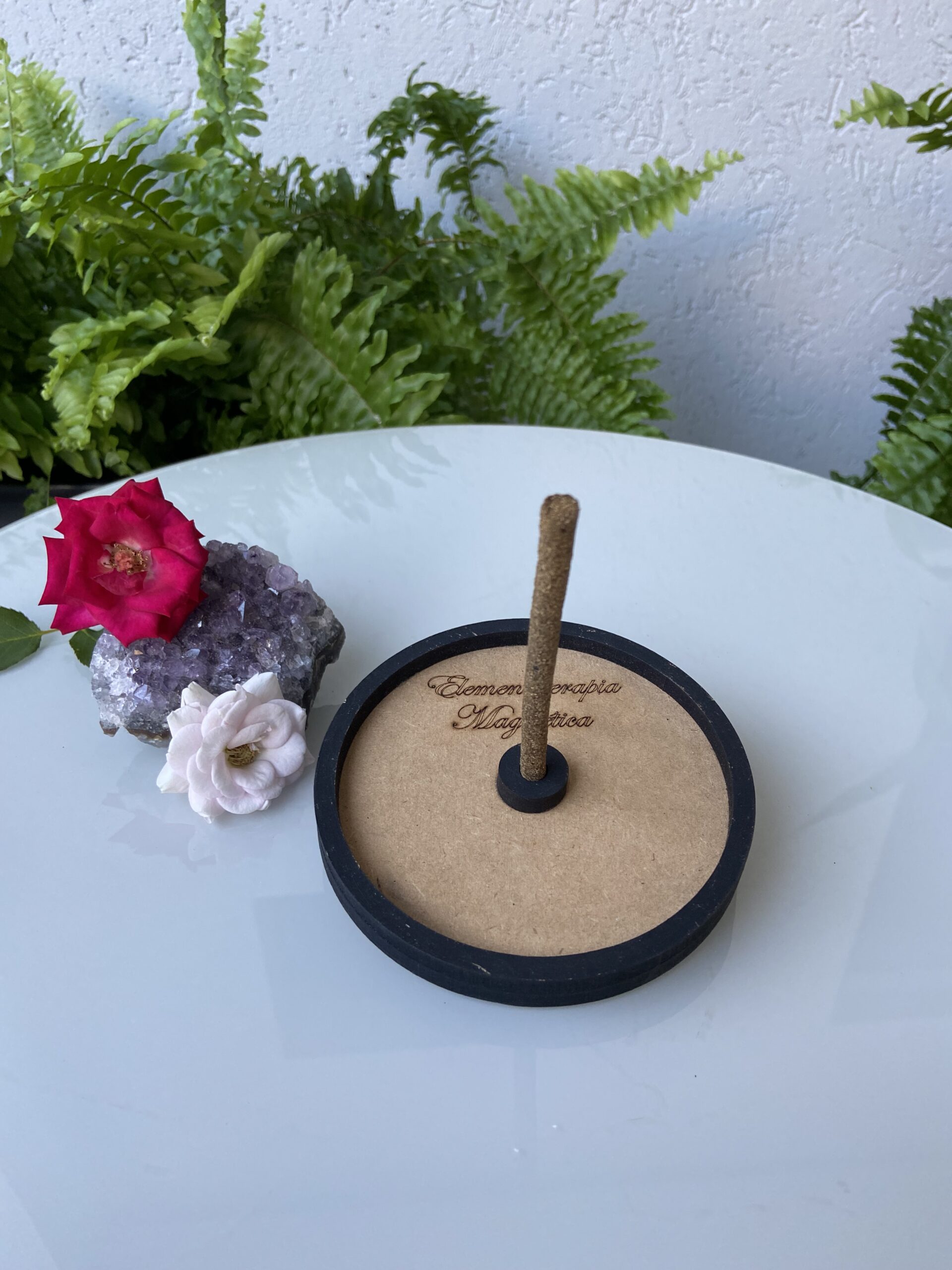 Incensário artesanal personalizado em MDF redondo com 12 cm de diâmetro